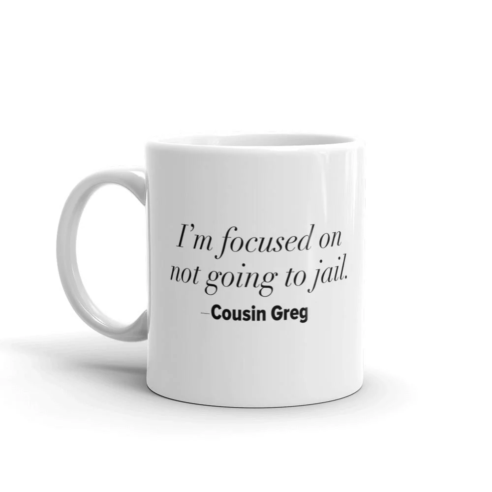 | Not Going to Jail Cousin Greg Quote Mug | $15.95 (11 oz.) $18.95 (15 oz.) | |